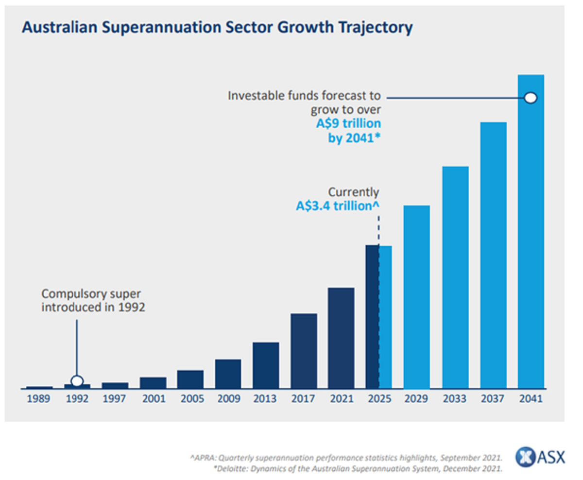 Australia’s compulsory superannuation system means it has the world’s fourth-largest pool of pension capital with A$3.4 trillion in investor assets. As Australia’s compulsory superannuation scheme continues to pull money into this pool, it is on a trajectory to reach $10 trillion within the next 20 years.