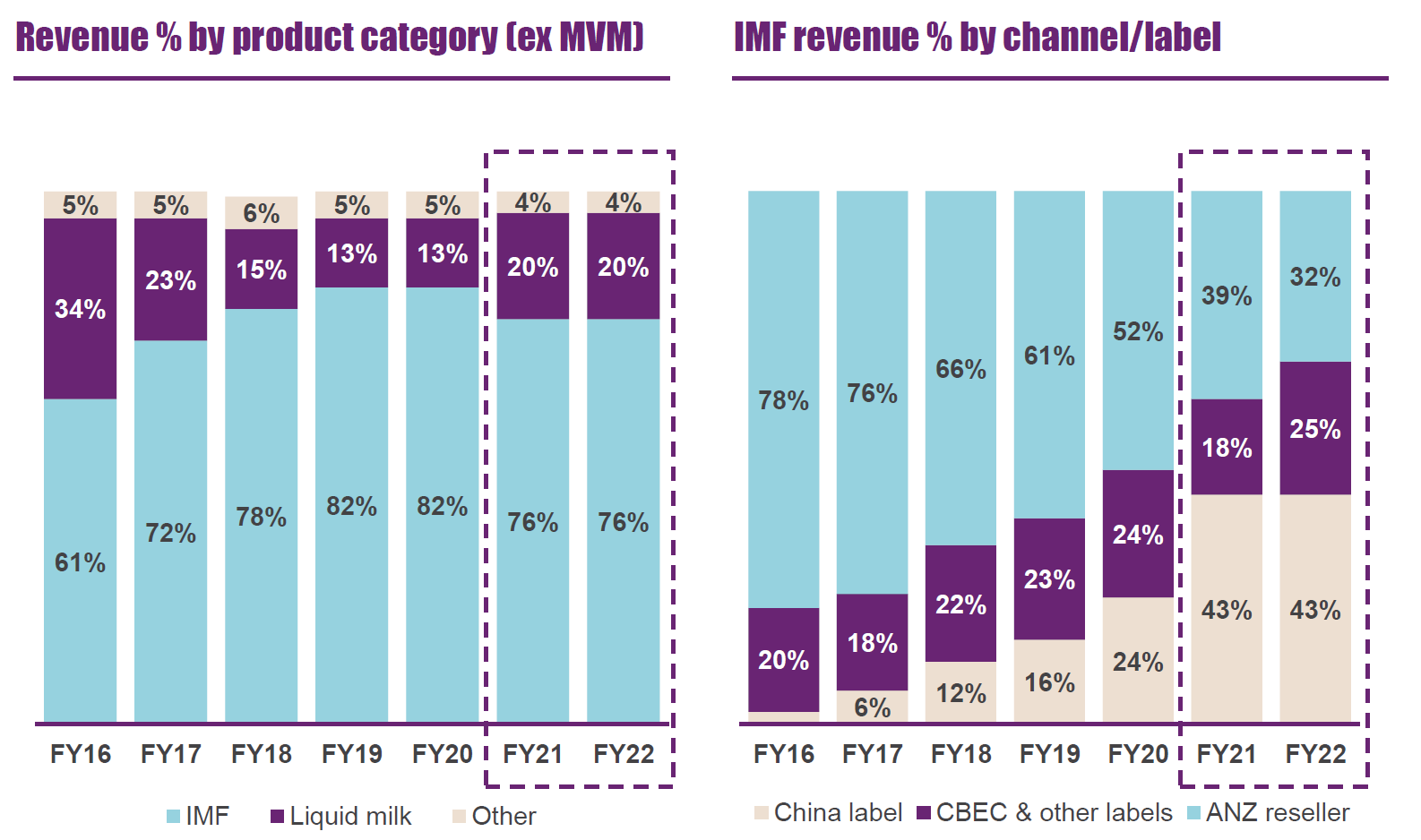 It’s worth noting that Chinese-label sales represent 85% of the market for infant formula in China. The Covid-19 pandemic impact had seen a significant shift towards Chinese-label product, one of the ley impacts for a2 in FY21. The company observed that market value for Chinese-label product declined by 3.1% in FY22